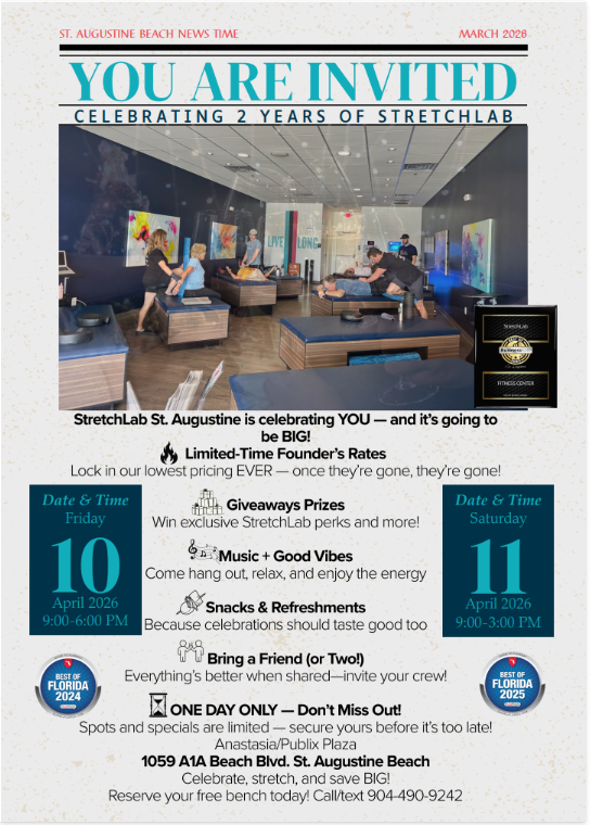 Get to know Stretch Lab St. Augustine Beach and celebrate their business with a 1 year anniversary ribbon cutting! Learn more about their team, products and services while you network with local leaders, chamber staff and fellow members.
