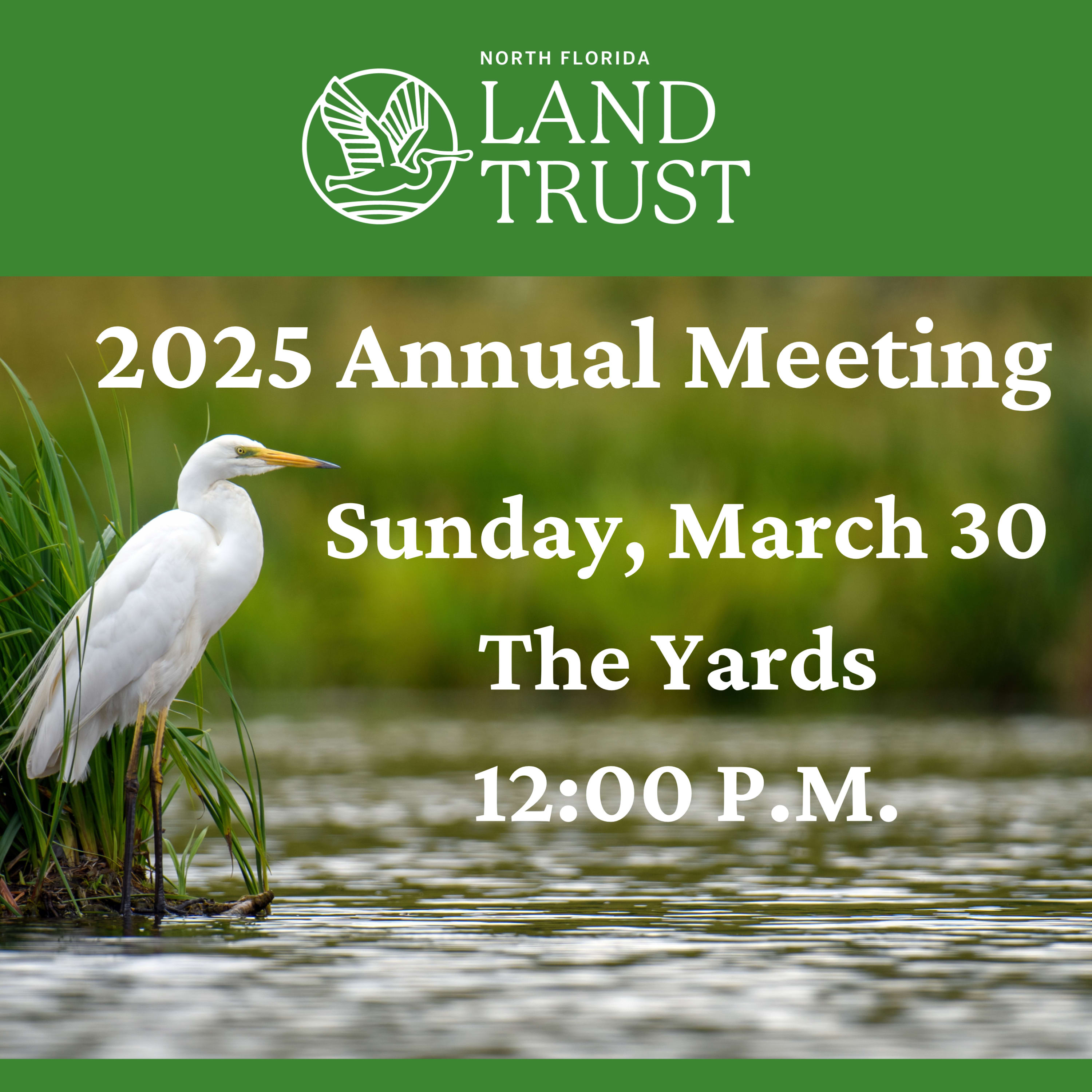 Jacksonville, Fla., Feb. 5, 2025 – Tickets are now on sale, and sponsorship opportunities are available for North Florida Land Trust’s annual meeting on Sunday, March 30. The event, held this year at The Yards in Ponte Vedra Beach, is an opportunity for the community to come together to reflect on the work of the nonprofit land conservation organization dedicated to protecting natural landscapes and to celebrate the conservation milestones it has achieved during its 25th anniversary year. The annual meeting will begin at noon and includes a Mimosa reception, brunch, and a program.