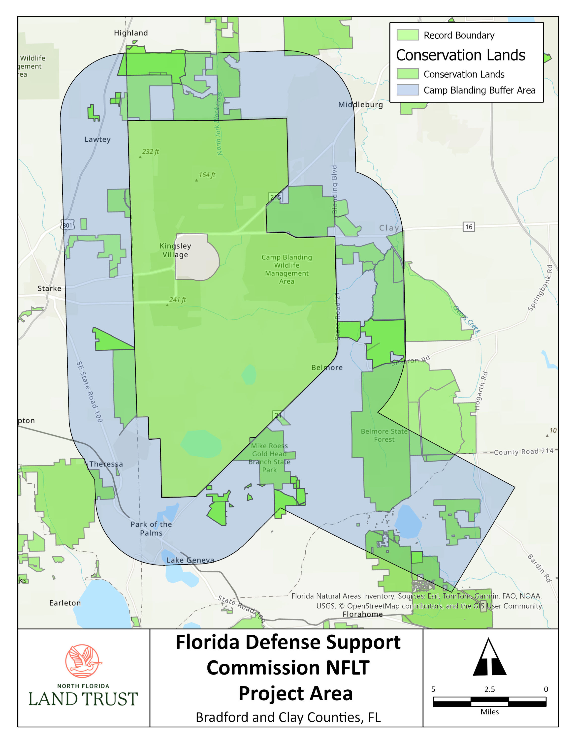 Jacksonville, Fla., Nov. 11, 2025 – North Florida Land Trust (NFLT) has been awarded a $550,000 grant from the Florida Defense Support Commission (FDSC) to prevent incompatible land development and encroachment around Camp Blanding. FloridaCommerce recently announced the grant, which is among $2.6 million the state designated to organizations to strengthen Florida’s military communities.